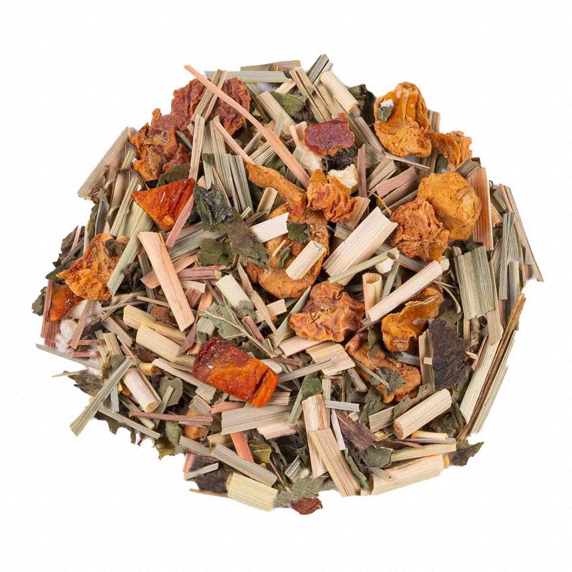 Lemongras, Apfel, Pfefferminze, Papaya, Ingwer (Ingwer, Rohrohrzucker), natürliches Aroma, Ananas.