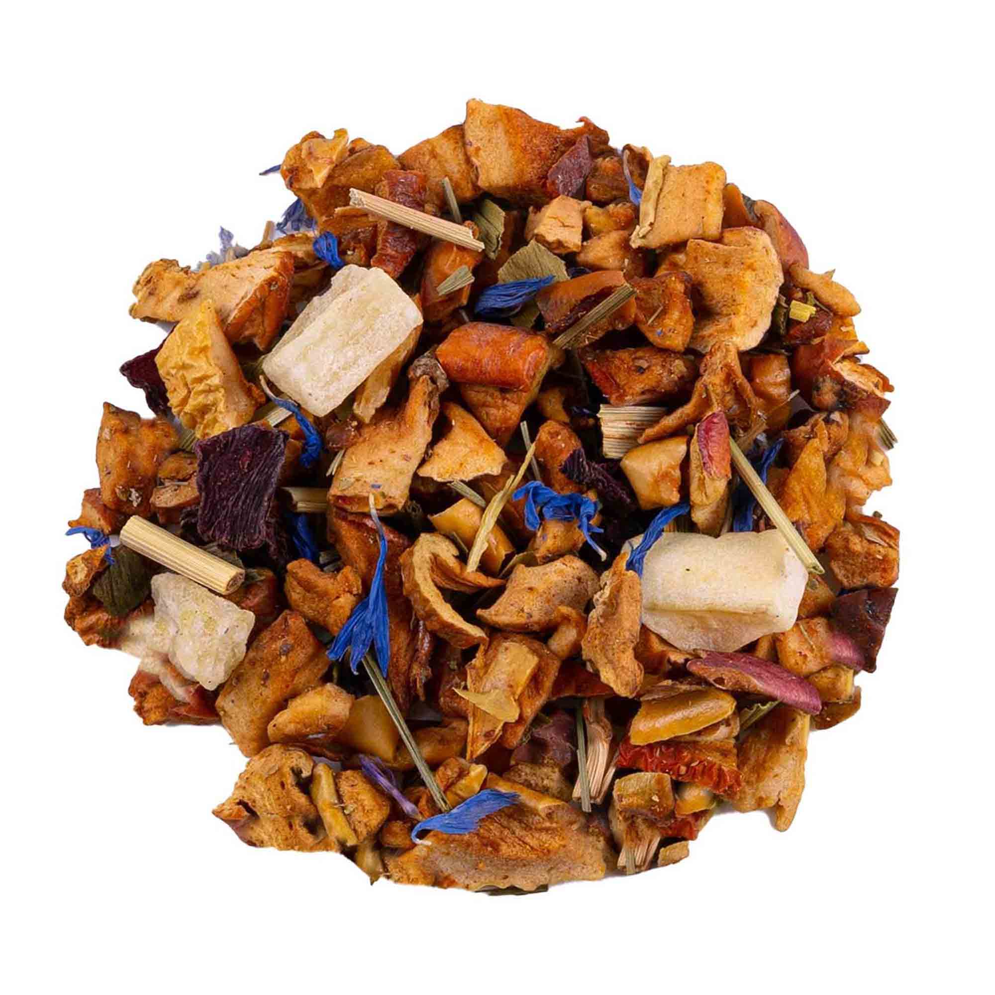 Die exotische Basis aus Mango, Papaya und Ananas schenkt dir eine wohlige, fruchtige Süße, während Aroniabeeren und Cranberries für eine feine, herbe Tiefe sorgen. Das Geheimnis dieser Mischung liegt jedoch in den funktionalen Kräutern: Passionsblumenkraut wird traditionell zur Beruhigung der Nerven geschätzt, während Ginkgo hilft, den Geist sanft zu klären. Optisch abgerundet durch Rote Beete und strahlend blaue Kornblumen, ist dieser Tee ein Fest für alle Sinne.